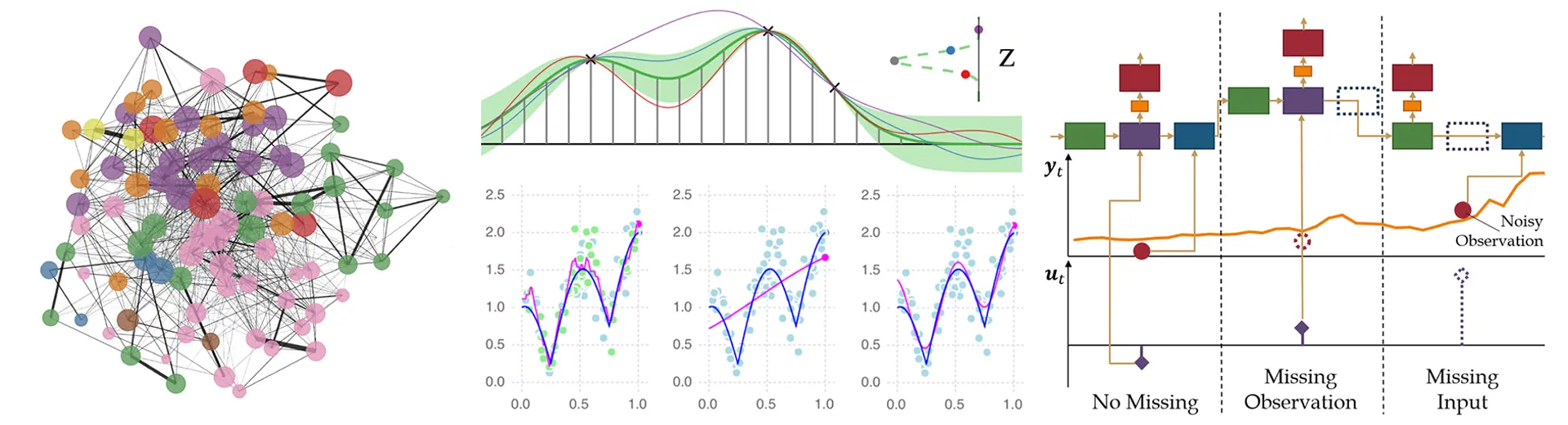 The sub-groups that constitute the MLRG are united in the development of robust machine learning and in its principled application to problems in science, engineering and commerce. Our work encompasses fundamental research into Bayesian theory, machine learning on graphs, physics-inspired inference and optimisation. Our methodology is similarly broad, with active research in probabilistic numerics, reinforcement learning, neural networks, Bayesian nonparametrics, Bayesian optimisation, learning theory, natural language processing, and maximum-entropy methods. Applications span numerous domains including astronomy, automation & employment, control, ecology, disaster response, finance, signal processing & multi-agent systems.
