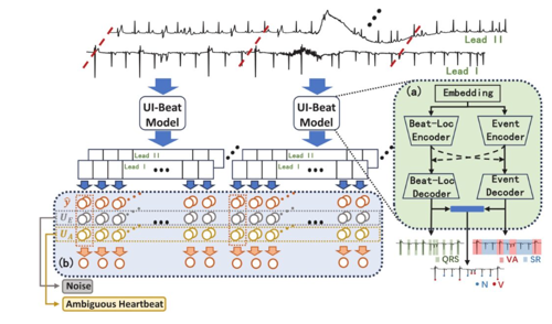 This work introduces UI-Beat, an uncertainty-inspired model for beat-level ECG diagnosis, designed to address the challenges of noise, artefacts, and variability in real-world and wearable ECG data. The model disentangles epistemic and aleatoric uncertainty within a deterministic neural network to improve both noise detection and heartbeat classification across heterogeneous data sources. UI-Beat achieves state-of-the-art performance in heartbeat localisation and classification, offering a robust and generalisable framework for ECG monitoring in diverse clinical and wearable scenarios. For more information, please refer to the paper.