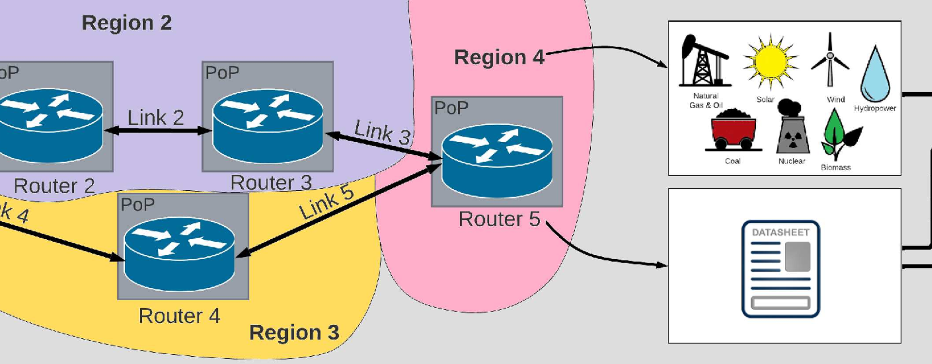 In this work we explored the potential benefits of introducing carbon awareness to routing. We defined a set of energy- and carbon-related metrics and integrated them into routing. The figure below is an overview diagram of the system and the metrics used.