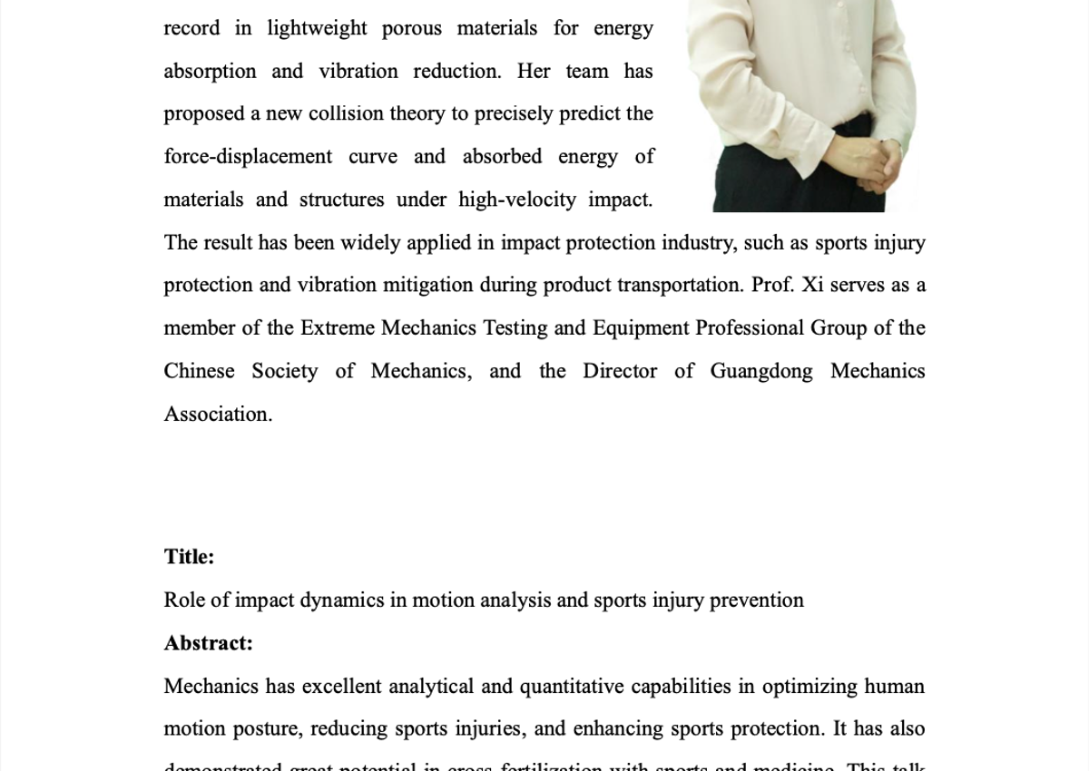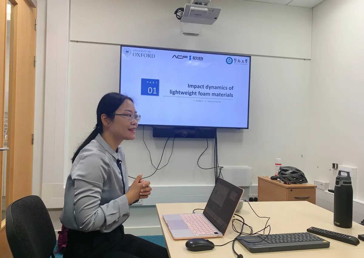 The first internal talk took place on 18th September and was delivered by Prof Huifeng Xi, a visiting professor at Prof Zhong You's Group. Prof. Xi talked about her research on impact absorption materials and how these can be used as protective equipment to prevent sports injuries. She also shared her work on motion tracking in sports and how it could be related to the understanding of internal forces on athletes' joints.