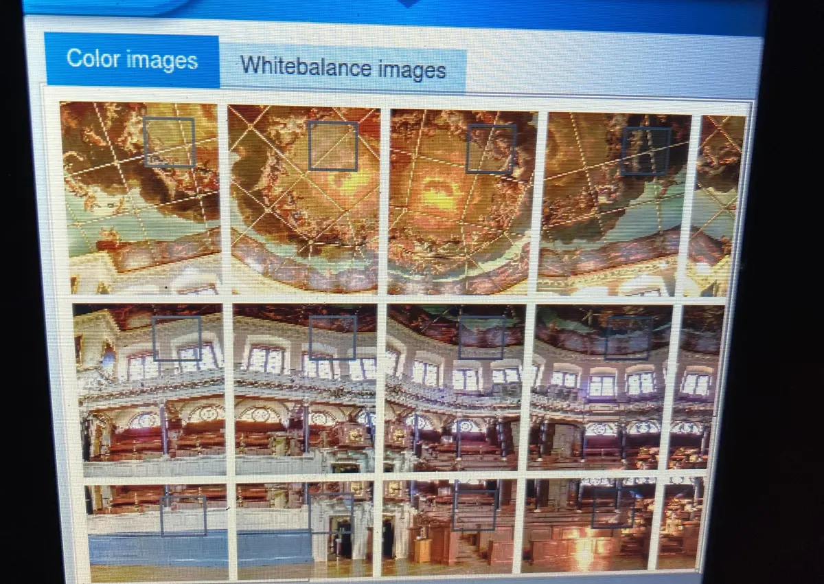 A series of camera images of the Sheldonian Theatre captured by the survey-grade 3D laser scanner. Image credit: Maurice Fallon.