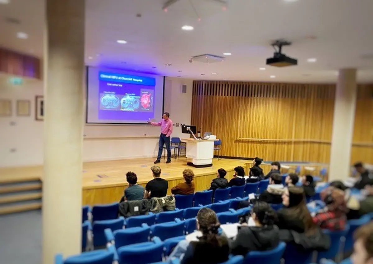 Students also described that they were inspired by the delivery of university lectures based on the mini-seminars given by IBME faculty and staff. The structured and easy to understand approach of the presentations stood out and helped students memorise the key points. Professor Nair’s talk on collagen scaffolds received much praise. The inclusion of the patient experience by clinical oncology registrar, Mr Jeffrey Rubasingham (pictured above), helped bring the impacts of biomedical engineering to life through relatable stories.