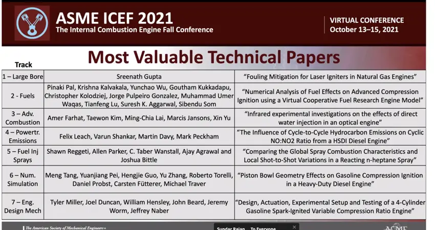 We are delighted to receive an ASME 'Most Valuable Technical Paper' Award in the category of Powertrain and Emissions for our paper entitled "The Influence of Cycle-to-Cycle Hydrocarbon Emissions on Cyclic NO:NO2 Ratio From a HSDI Diesel Engine". The paper was presented By Prof. Felix Leach at the 2020 ASME ICEF Conference. Many thanks to ASME for this recognition and congratulations to Felix and co-authors. Congratulations also to the awardees in the other paper categories.